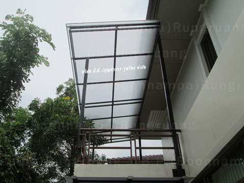 หลังคาโพลีคาร์บอเนต โครงเหล็ก สีขาวขุ่น