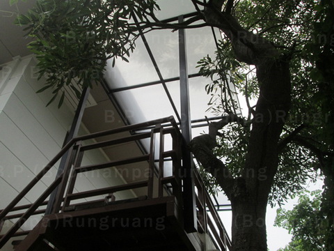หลังคาโพลีคาร์บอเนต โครงเหล็ก สีขาวขุ่น