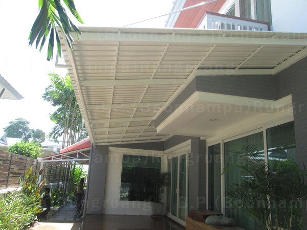 กันสาดไวนิลเรียบ สีขาว โครงเหล็ก