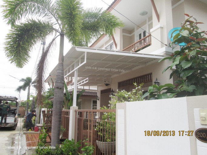 กันสาดไวนิล โครงเหล็ก หน้าบ้าน